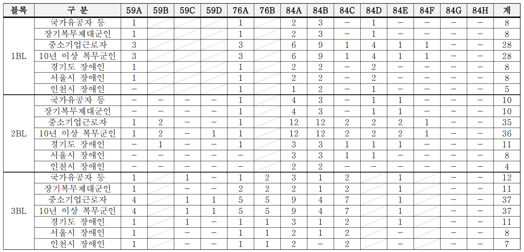 특별공급 세대수의 3 배수만큼 예비추천 대상자를 선정하게 되는데 힐스테이트 몬테로이 블록별 기관추천 특별공급 대상 세대수는 하단의 표를 참고하세요.