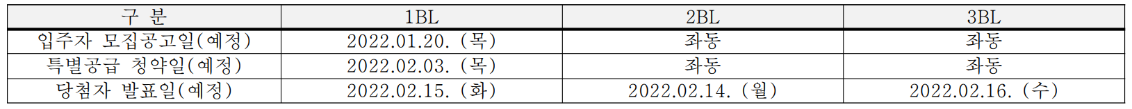특별공급 청약일은 3개 블록 동일한 2월 3일 목요일에 진행하지만,