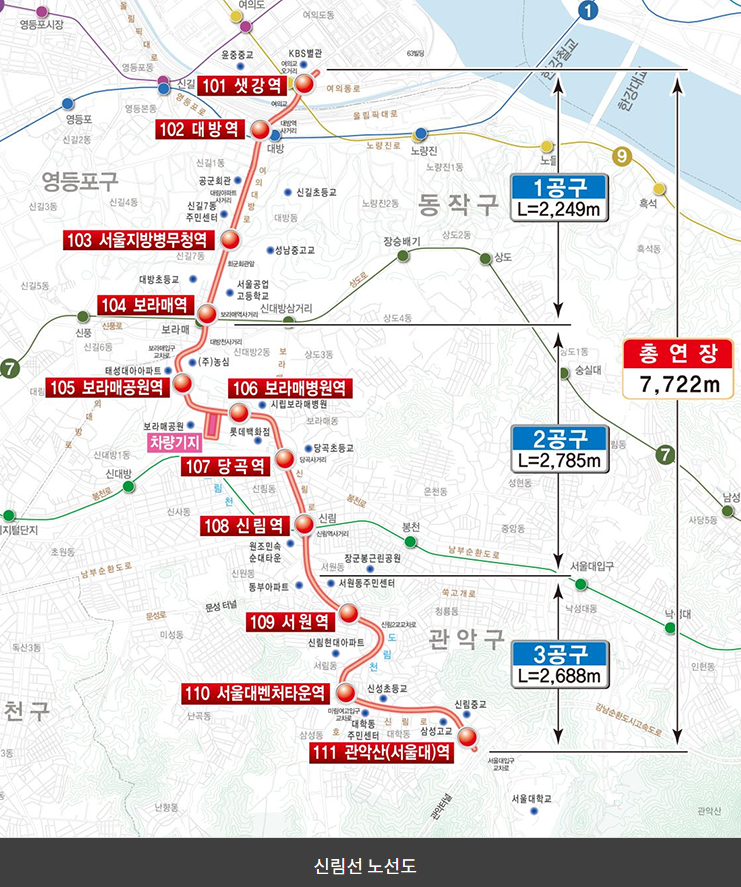 신림선은 9호선 샛강역에서 시작해 1호선 대방역, 7호선 보라매역, 2호선 신림역을 경유, 서울대 앞까지 총 연장 7.8㎞를 연결하는 경전철입니다.