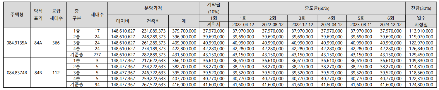 84B타입 4억 1,600만원